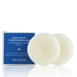 DESCRIPTION A nutrient-rich, deeply conditioning bar with Coconut, Cacao and Shea Butters, to smooth, soften, and restore shine, while supporting healthy hair growth. Rose Geranium and Jasmine essential oils impart an uplifting aroma. INGREDIENTS • Plant-derived Complex – A blend of gentle, plant-derived conditioners and moisturisers helps detangle, smooth and soften hair. This complex helps reduce frizz and static, improves manageability, and leaves strands silky, shiny, and easy to style — without heaviness or buildup. • Jojoba Esters – Intensely moisturise and condition to smooth and add shine. They may also help calm scalp irritation, reduce dandruff, and support hair strength while protecting against heat damage. • Biotin – Supports strong, healthy hair growth and helps with the production of keratin, which plays a role in maintaining hair strength and resilience. • Vitamin E – A protective antioxidant that helps shield against environmental damage while supporting scalp nourishment. Regular use replenishes the hair’s outer lipid layer to lock in moisture, restore shine and texture, and reduce dryness and split ends. • Jasmine – Naturally moisturises and soothes the scalp. Its antimicrobial properties help protect scalp health, while its conditioning benefits strengthen hair, reduce breakage, smooth frizz, and enhance shine and elasticity. • Rose Geranium – Helps create a healthy scalp environment by balancing oil production and nourishing follicles. Its antioxidant and antimicrobial properties calm itchiness and reduce dandruff, while imparting natural shine and vitality. APPLICATION After shampooing, wet the bar and glide over the mid-lengths and ends of your hair. Set the bar down and massage the conditioner through. Rinse immediately or leave on for 1-2 minutes for extra nourishment. Note: Avoid contact with eyes. If contact occurs, rinse thoroughly with clean water. COMPLEMENTARY PRODUCTS • Hair Vitality Shampoo Bar • Hair Vitality Vegicaps RESULT Deeply nourished and healthy hair.